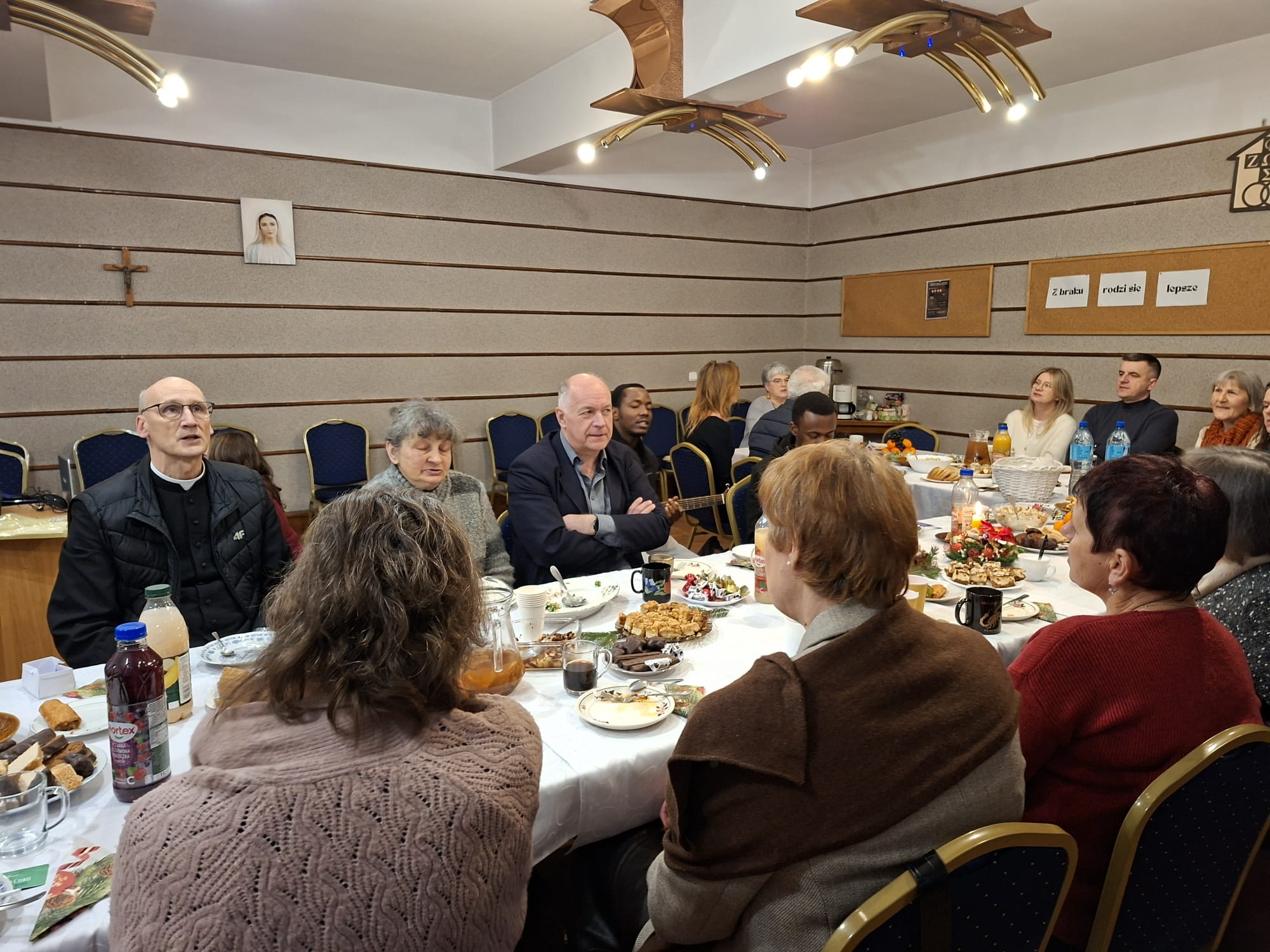 W niedzielę 11 stycznia w licznym gronie w Maitri Lublin odbyło się spotkanie opłatkowe. Przybyli rodzice adopcyjni z Lublina, Kielc, Rzeszowa, Biłgoraja i Włodawy. Uroczystość uświetniła obecność opiekuna duchowego wspólnoty - ks Andrzeja Szuleja oraz ks Wojciecha Rebety (byłego opiekuna). Modliliśmy się i śpiewaliśmy razem ze studentami UMCS z krajów afrykańskich.